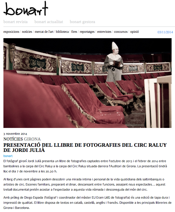 Article a la revista cultural Bonart . 3 de novembre 2014